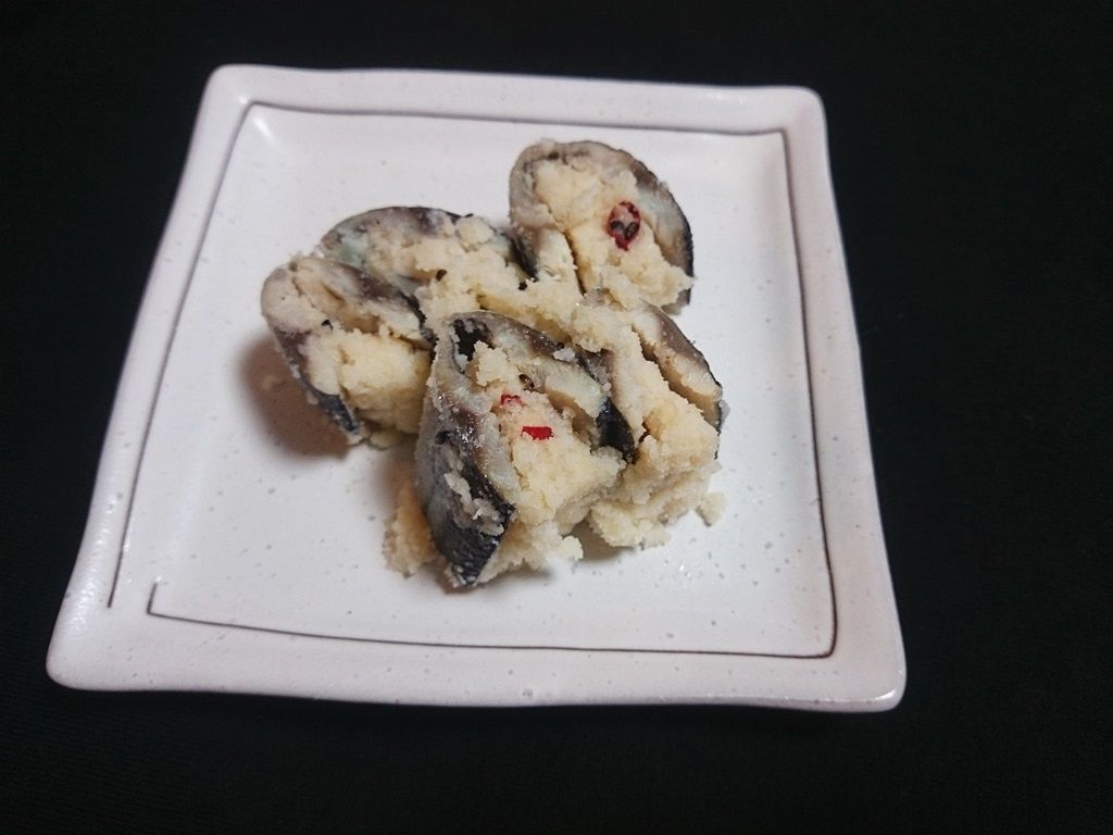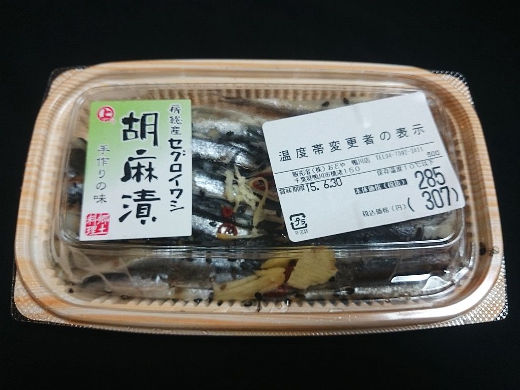 頭とワタを取ったイワシを黒胡麻と一緒に酢漬けにしたもの。