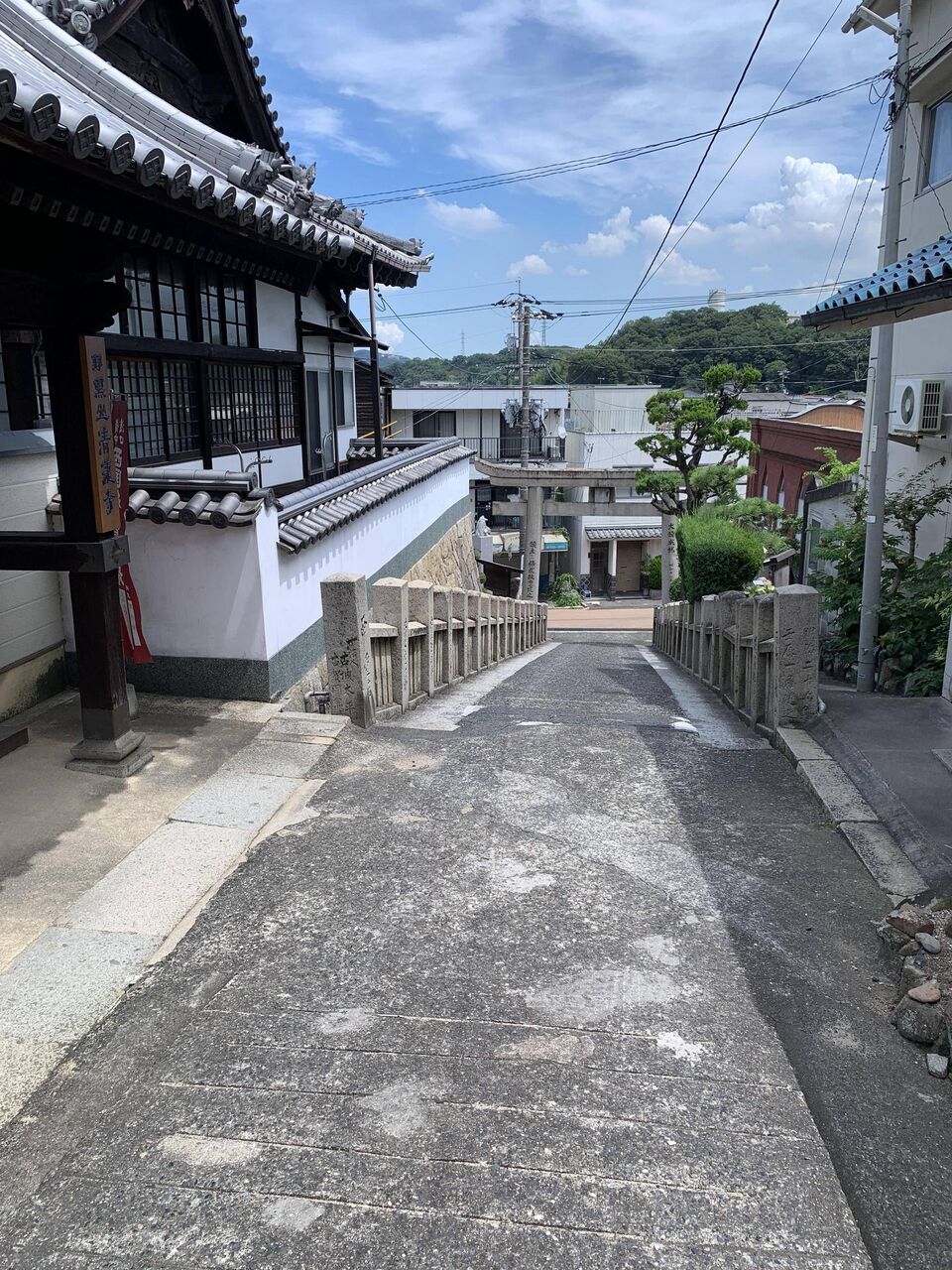 美観地区の商店街の前やろ