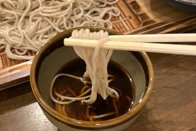 まず蕎麦と薬味を口に頬張ってからつゆをズズッて啜ってるわ