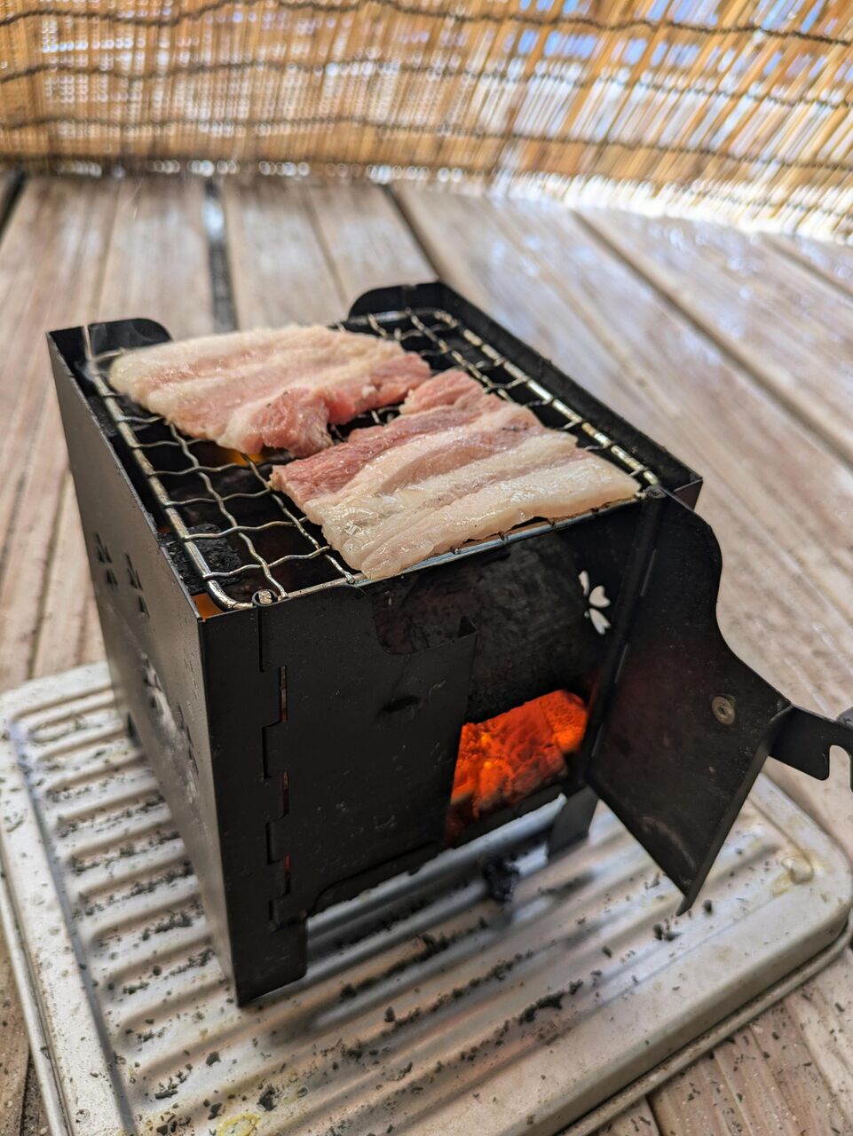 ウッドデッキかなんか知らんけど底焦げるだろ