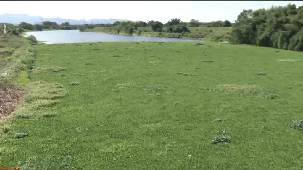 河川の水面をすべて覆う勢いの浮草を初めてみたわ