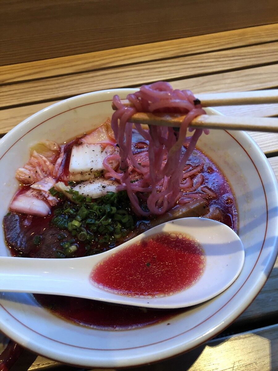 古くから伝わるボルシチをスープに使い、そのまま「ボルシチラーメン」と名付けている。ボルシチは真っ赤な野菜のビーツを煮込むことが多いため、麺やスープは深紅に染まっている。トッピングにはロシア版のギョーザやキャビアなどが選べる。