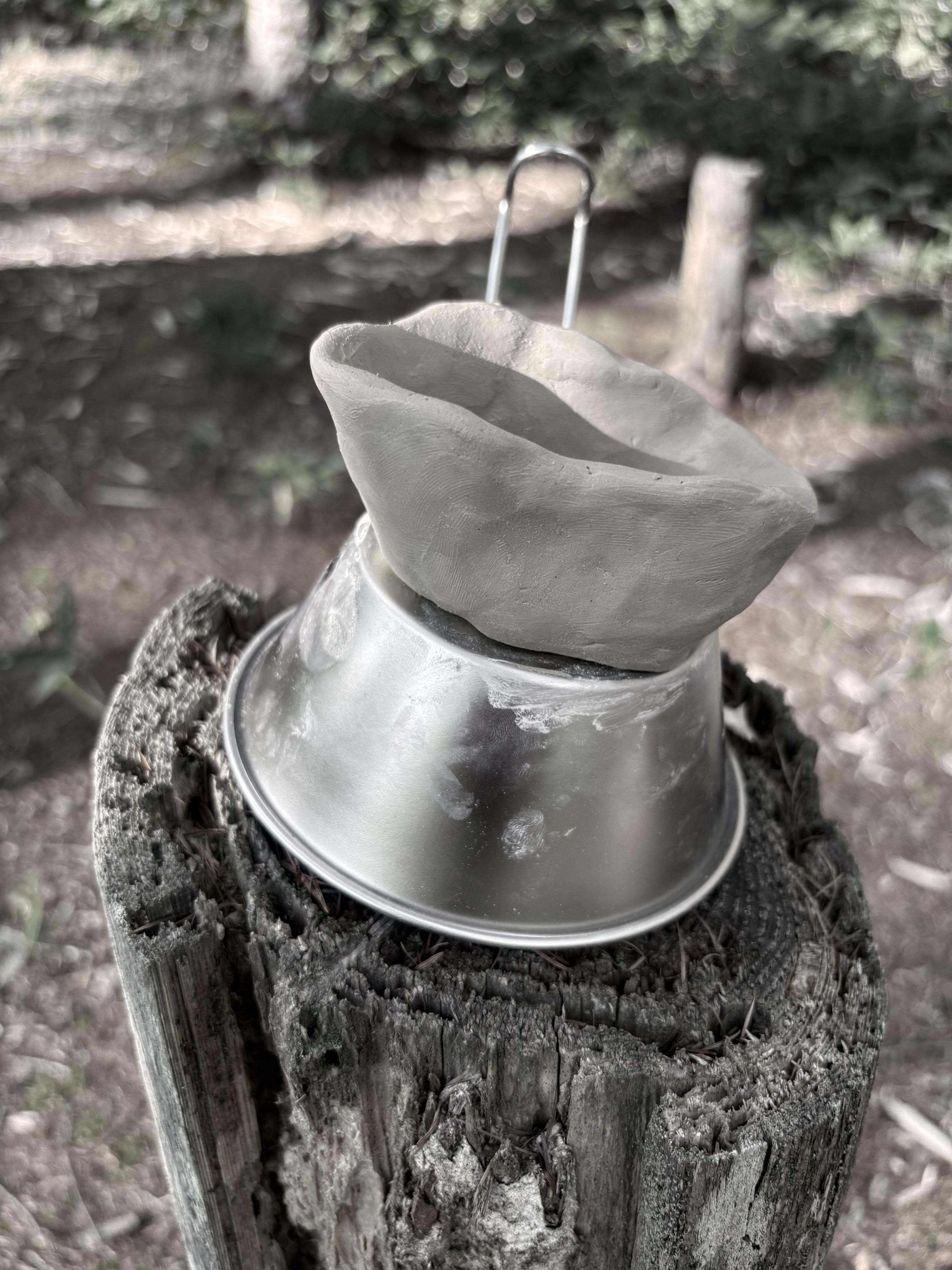 (´・ω・`)ろくろはないからシェラカップを台にしたよ