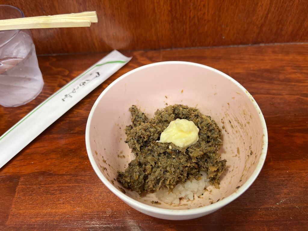 まぜそばに締めの米だろうけど上に乗ってる鳥の餌みたいなの何?