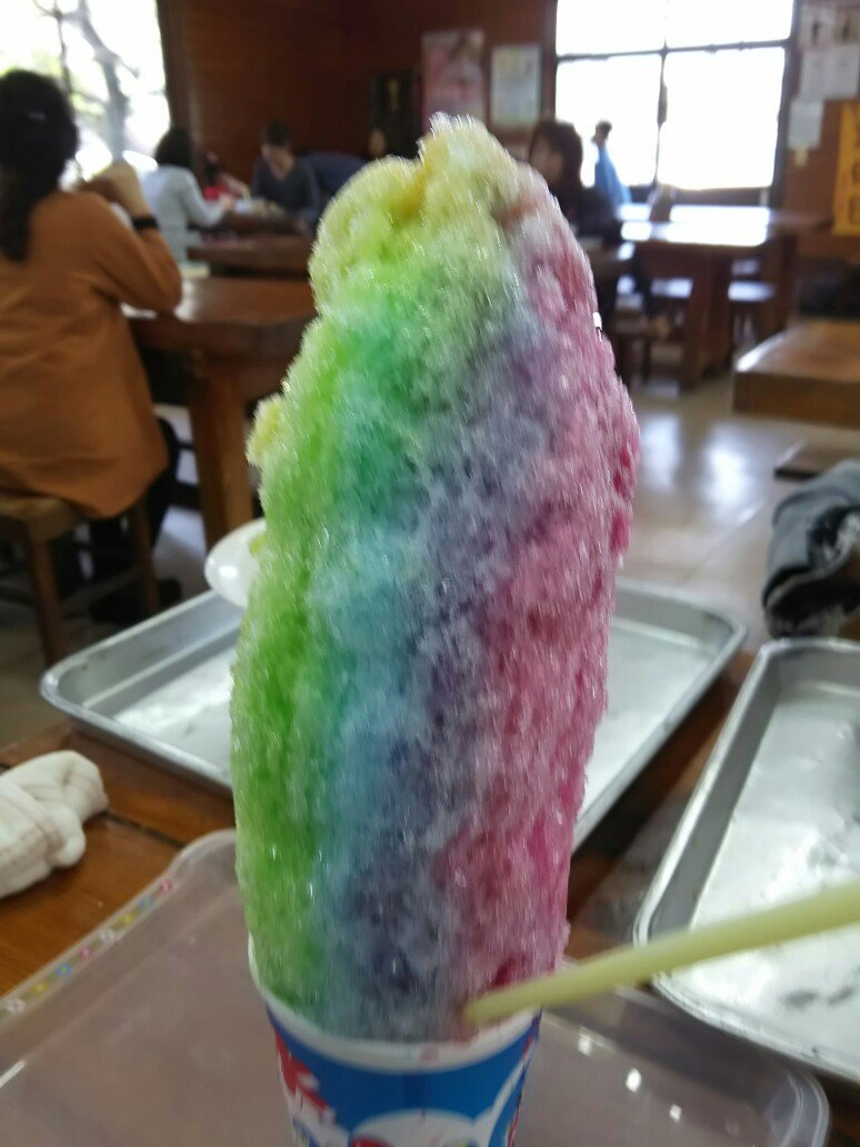 「宮崎名物、百姓うどんのかき氷。家族4人じゃ食べ切れない」